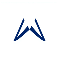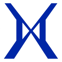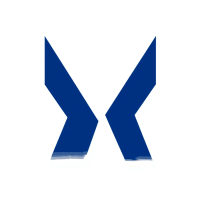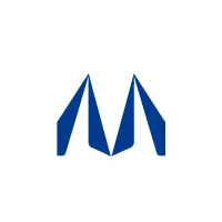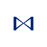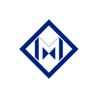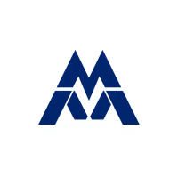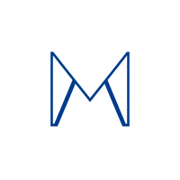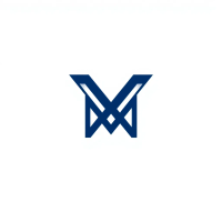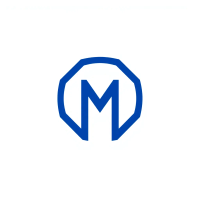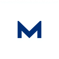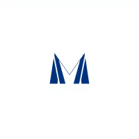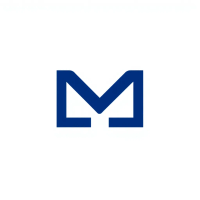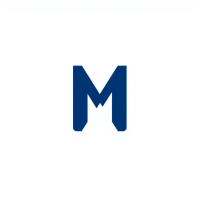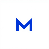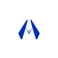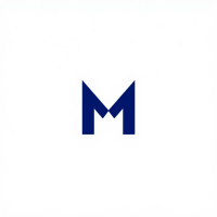 Ultra minimal M logo, two bold angled strokes meeting at a center point forming a clean geometric M, solid indigo #3D63DD, no detail no texture, pure geometric letterform, vector, white background