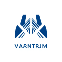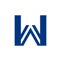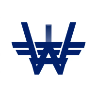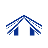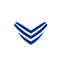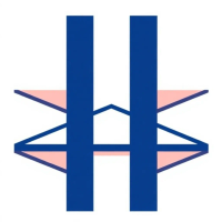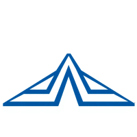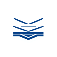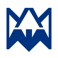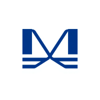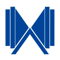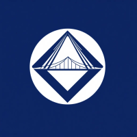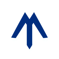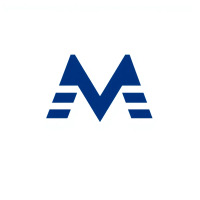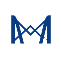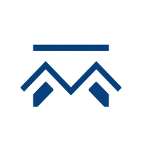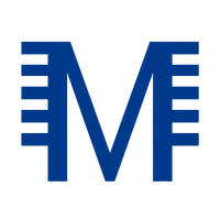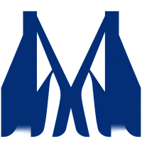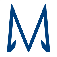 Geometric M lettermark logo, two bold parallel vertical strokes connected by 2-3 small angled V-shaped bridges between them suggesting hierarchy levels, solid indigo blue, minimal flat vector, white background --style raw