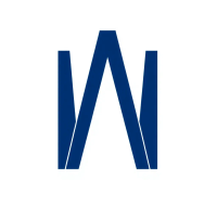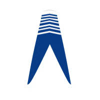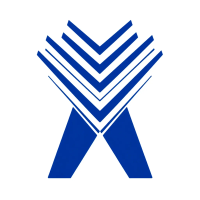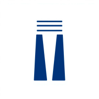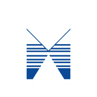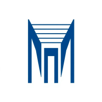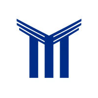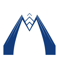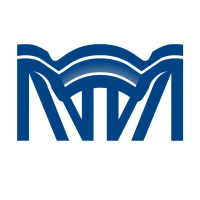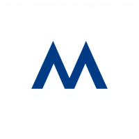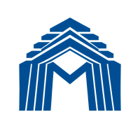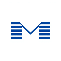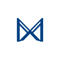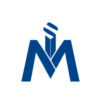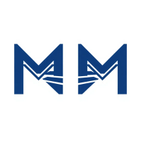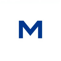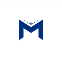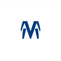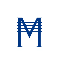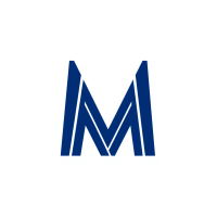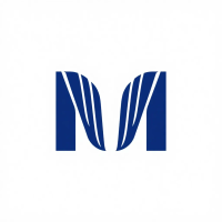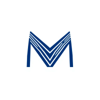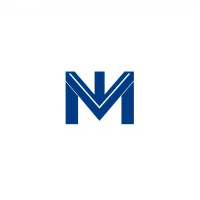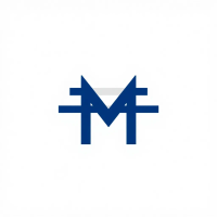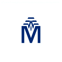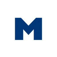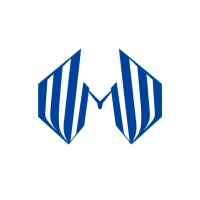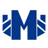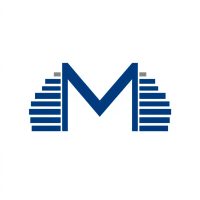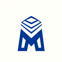 Bold letter M logo with parallel strokes that subtly taper narrower toward the top creating a sense of upward hierarchy and structure, solid indigo blue, clean geometric vector, white background