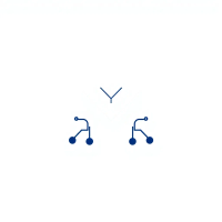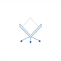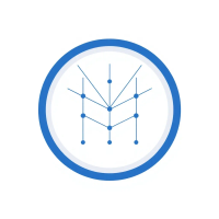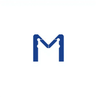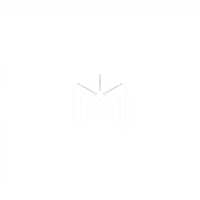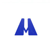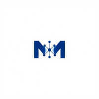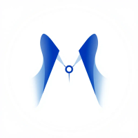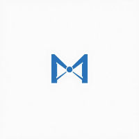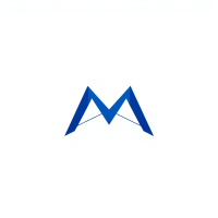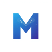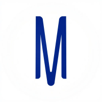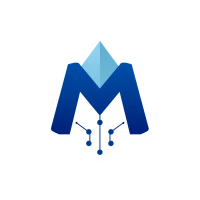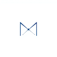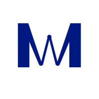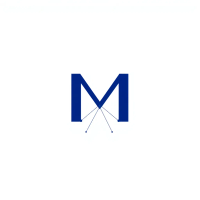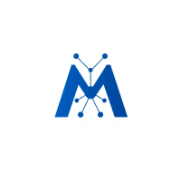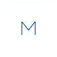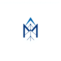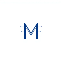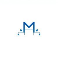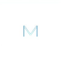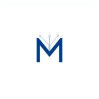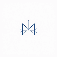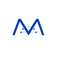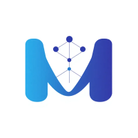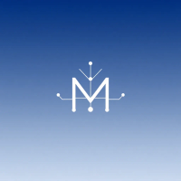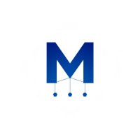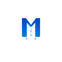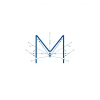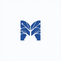 Abstract letter M logo where the center peak is a parent node and the four bottom points are child nodes, connected by thin branching lines forming a tree hierarchy in the shape of M, indigo gradient, minimal vector, white background