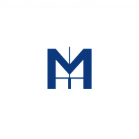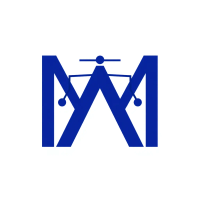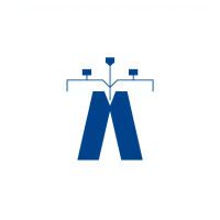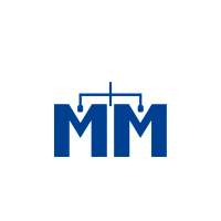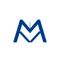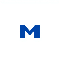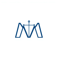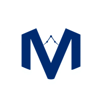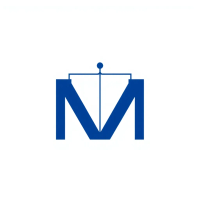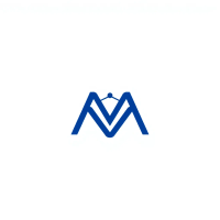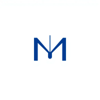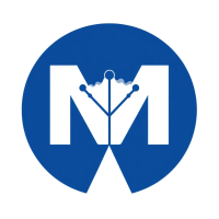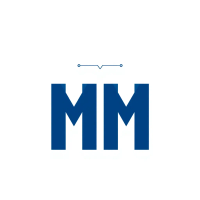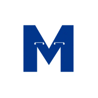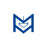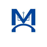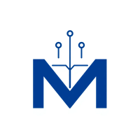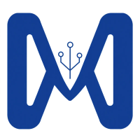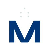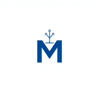 Minimal bold letter M logo, solid geometric M shape with small V-shaped connector lines bridging between the two vertical strokes like tree branches or hierarchy levels, indigo blue, flat vector, clean modern SaaS logo, white background
