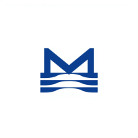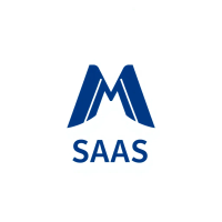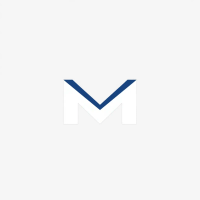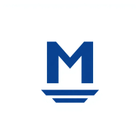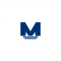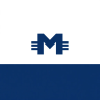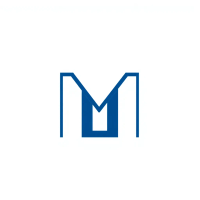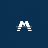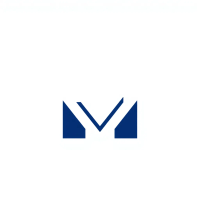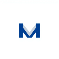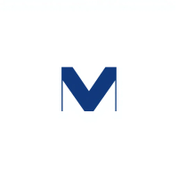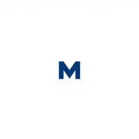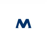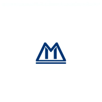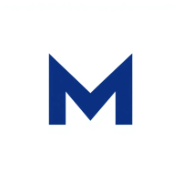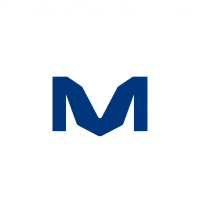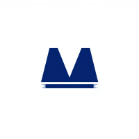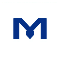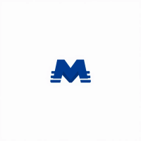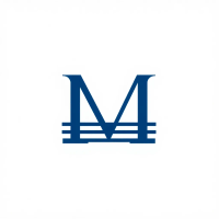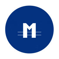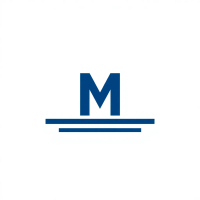Bold M logo mark, solid geometric letter with subtle thin horizontal connector lines between the strokes suggesting structured layers, indigo on white, modern minimal SaaS branding, flat vector