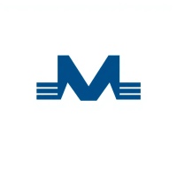 Bold M logo mark, solid geometric letter with subtle thin horizontal connector lines between the strokes suggesting structured layers, indigo on white, modern minimal SaaS branding, flat vector